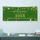 Create a class reunion welcome banner sign featuring the title WELCOME in a modern calligraphy script typography, Class of Year and name of your school, college or university alumni or other custom text with gold stars and string lights in your choice of text and background colours (shown in green, gold and white) you can change to school colours or party theme colours in EDIT. BANNER OPTIONS: The sample is shown in the 2.5x6' indoor style--other sizes and "outdoor" are available on the ordering page as well as the option of transferring the design to a foam board, poster, tapestry or other product or have the designer convert it to a DIGITAL DOWNLOAD file before personalising it for printing locally. ASSISTANCE: For help with design modification/personalisation, colour change, resizing, transferring the design to another product or if you would like coordinating items, contact the designer BEFORE ORDERING via Zazzle Chat or makeitaboutyoustore@gmail.com.