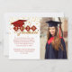 This classic graduation announcement features red and gold cap and tassel on diamond shields, gold confetti background and graduating year. Add your custom text and favourite photo to the front, and one on the back to personalise. Perfect for announcing your son or daughter's graduation. Easy to customise by clicking "Personalise".