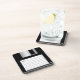 Reminisce about the good old days with these nearly lifesize floppy disc cork bottom coasters. Black and white.