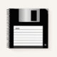 Design on front and back. Reminisce about the good old days with this nearly lifesize floppy disc notebook.