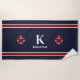 Classic Anchor Nautical Red White Blue Monogram Beach Towel