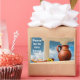 Classic antique still-life with bunch of grapes, slice of bread and an earthenware pot or pitcher against the background of white columns of Ancient Roman temple and dramatic sky. Customisable rectangle sticker. You can change or delete the template text Peace be to this house.