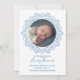 Classic and elegant birth announcement with baby blue elegant wreath. An elegant baby boy photo announcement template ideal for newborn photos. With light blue and slate blue colour with simple modern greenery floral scheme. A simply sweet baby boy photo announcement.