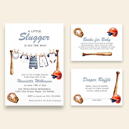 Little slugger baby shower collectionDesigned by Janine Cooper