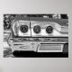 High definition monochrome photograph of the left- tail lights of an American classic car.