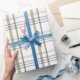 Classic Beige and Blue Plaid Pattern Wrapping Paper