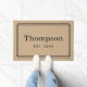 This clean doormat features your family last name in elegant script with your established year, framed by a double-line border on a light beige background. The warm, creamy neutral creates a fresh and inviting first impression at any front door. A timeless housewarming or new home gift. All text is fully customizable.
