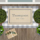 This understated doormat features your family last name in elegant script with your established year, framed by a double-line border on a soft beige-gray background. The gentle warm neutral bridges beige and gray tones for an effortlessly coordinated porch look. A charming housewarming gift. All text is fully customizable.