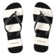 With elegant minimalist styling, this simple classic design has a sophisticated modern appeal. The bold horizontal rugby stripes pattern in black and eggshell off-white has a clean-look sans-serif type face for including your first and last name. These flip flops make wonderful gifts for a variety of occasions including birthdays, weddings, bridal showers, graduation, pool parties and more.