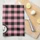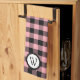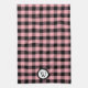 Classic Black and Pink Buffalo Plaid with Monogram Tea Towel