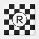 Add your monogram initial in the sidebar to personalise the classic black and white chequered pattern made of rows of alternating white and black squares.
