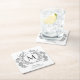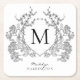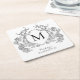Classic Black and White Floral Crest Monogram Square Paper Coaster
