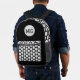 Personalise this classic black and white created backpack with your monogram.  This backpack features a golf ball design / white ball pattern on black.  This bag would be a thoughtful gift for him or her.