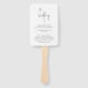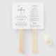 Elegant wedding program hand fan featuring a simple design with "the wedding of" in a modern handwritten script and your event details in classic serif fonts.