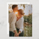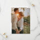Elegant wedding save the date card featuring a simple and minimal layout with "save the date" in a modern handwritten calligraphy and your names and date in a classic serif font over your favourite photo. The back has a second picture along with your personalised message. The colour theme is black and white and may be changed in the design editing tool.