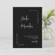This elegant modern minimalist wedding invitation features a clean black background with stylish calligraphy of the couple’s names and a simple serif font for the event details. The timeless design includes a large personalised photo of the happy couple on the back, accompanied by a QR code that allows guests to RSVP quickly and conveniently.