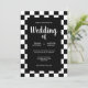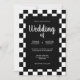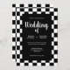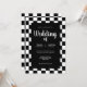 Another original wedding invitation with a bright frame of black and white chequered tiles on a pure black background. A fun variation of a classic and timeless theme. A sophisticated design for any kind of wedding at any time of year. You can change the names and date in the customise menu.
