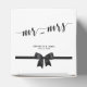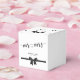 Classic black and white wedding favour boxes with black bow and customisable text - you can add bride's and groom's name and wedding date.