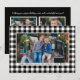 Frame your favorite photo with bold black buffalo plaid for a timeless farmhouse Christmas look. A crisp white border keeps the design clean, with a simple line for your family name and year. On the back, a modern black layout includes a photo collage and a joyful holiday message—perfect for sharing a few extra moments.
