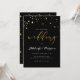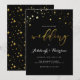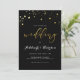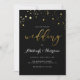 Classic wedding invitations featuring faux gold foil star confetti and elegant typography against a black background. "Wedding" is displayed in a chic calligraphy and serif font combination. This invitation reverses to a black background with a gold star pattern. You can easily customise the background colour to suit your needs.