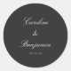 Stylish Formal Classic Traditional Script Elegant Wedding Invitation Custom Classic Round Sticker with Black Background and White Text