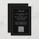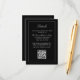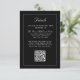 An elegant wedding details card in classic black to provide your wedding guests with the details they will need surrounding your wedding. You can edit the text template with hotel info, driving directions, special meet and greet gatherings and more. This template includes a QR code to include your wedding website where your wedding guests can find all the details about your special day. Simply edit the text template as desired.
