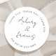 Classic Black White Personalised Names Wedding Round Sticker