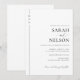 This invitation is a masterpiece of minimalist design, reflecting a perfect blend of classic elegance and modern simplicity. The sharp black typography against a pristine white background offers a clear, readable invitation that speaks directly to the sophistication expected at Sarah and Nelson's wedding. The thoughtful layout, including a subtle nod to traditional styling with its delicate script for the header, invites guests to a celebration of love set within the serene backdrop of Maplewood House. This invitation is not just an announcement, but a prelude to the grace and refinement awaiting the guests.