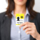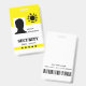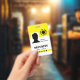 A classic and trendy black, white and yellow name badge featuring your personalised photo, barcode and logo template. Easily customise this badge to your brand.