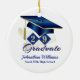 This keepsake ornament features blue and gold cap and tassel on diamond shields with your graduating year, diploma, name and school. Makes a great gift this holiday season. Easy to personalise with custom options.