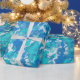 Vibrant classic blue and turquoise paint splatter patterned gift packaging.
