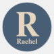 Classic Blue And Vanilla Initial/First/Family Name Round Sticker