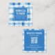 Classic Blue and White Gingham Chequered , QR Code Square Business Card