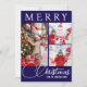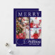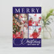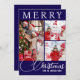 Spread holiday cheer this season with this modern yet classic blue and white personalised Christmas card, featuring three of your cherished family photos on the front. Adorned with the word "MERRY" across the top and "Christmas" in a classic script across the bottom alongside your family name. On the back, customise the message to share a heartfelt, editable Christmas greeting, perfectly tailored to express your unique holiday wishes. Add your first names below the message to add a personal touch, creating a keepsake that friends and family will treasure. This card is the perfect blend of tradition and personalisation, making it an unforgettable way to spread holiday cheer.