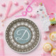 Classic blue brown monogram birthday party paper plate