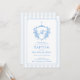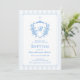 Celebrate your son’s baptism with this timeless crest-style invitation featuring floral accents, a monogram letter option, and a classic cross design. Perfect for elegant Christian christenings or Catholic baptisms. Fully customisable.