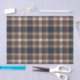 This elegant and contemporary gift wrapping tissue paper showcases a plaid pattern in shades of green, dark blue, red, and ochre yellow, creating a classy and nostalgic English holiday atmosphere. The paper is perfect for wrapping Christmas gifts in a classic colonial style and complements a charming country cottage or log cabin theme.