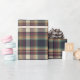This elegant and contemporary gift wrapping paper showcases a plaid pattern in shades of green, dark blue, red, and ochre yellow, creating a classy and nostalgic English holiday atmosphere. The paper is perfect for wrapping Christmas gifts in a classic colonial style and complements a charming country cottage or log cabin theme.