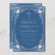 Classic Blue Faux Silver Cross Boy First Communion Invitation