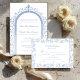 Featuring delicate blue toile illustrations of florals and garden birds, this card evokes a sense of vintage charm and refined sophistication — perfect for couples who adore European-inspired wedding stationery.