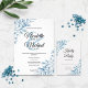 This classic blue floral wedding reception card is perfect for a spring or summer wedding. Featuring hand drawn cherry blossoms, buds and twigs in a dark blue against a white background. Elegant calligraphy script is balanced by clean and modern typography throughout the rest of the design.
