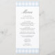 Add a finishing touch to your baby shower or event with this elegant blue gingham baby shower menu.