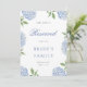 This beautiful design features an all around frame of blue hydrangea blooms and your custom text on the front and back. Punch a hole in the top and add your own ribbon to hang on a chair. Use the template form to add your information.