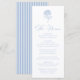 Share your wedding menu with this classic blue hydrangea wedding menu, designed to coordinate seamlessly with timeless and traditional wedding stationery. This elegant menu features a hand-drawn blue hydrangea illustration at the top, followed by “The Menu” displayed in refined blue calligraphy script. Your menu selections are presented below in clean, easy-to-read serif lettering for a balanced and sophisticated layout. The back of the menu displays a coordinating blue and white striped pattern, adding a tailored finishing touch. Perfect for classic, garden, and estate weddings, this wedding menu card adds a thoughtful and polished detail to your table setting. Personalize the text to create a cohesive menu that complements your wedding stationery suite beautifully.