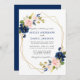 Classic Blue Pink Floral Geometric Gold Wedding Invitation