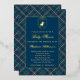 Classic Blue Plaid Polo Equestrian Baby Shower with Real Gold Foil Accents - A preppy, classic baby shower invitation with equestrian and plaid elements in navy and hunter green with gold tone and burgundy red accents. A polo player on horse silhouette adorns the top with a monogram crest and the tartan pattern adds a timeless, classy touch. Perfect for an Old Money themed baby shower with a classic, vintage and luxurious feel. If you like grandpa core, vintage style this is a great baby shower invite. Available in print and as a digital download. Customise this editable baby shower invitation template with your own event details.