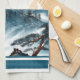 Classic Blue White Chinoiserie Mountains Painting Tea Towel