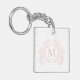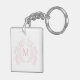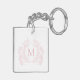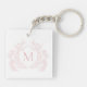 Classic Blush Pink Floral Crest Monogram Key Ring