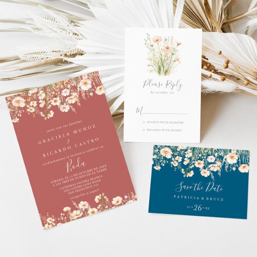 This classic boho blush wildflower wedding brunch invitation is perfect for a modern event. The design showcases graceful and elegant watercolor hand-designed blush, pink, multicolor wildflowers neatly arranged into attractive bouquets.
