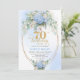 Classic Boho Light Blue Floral Gold 70th Birthday Invitation